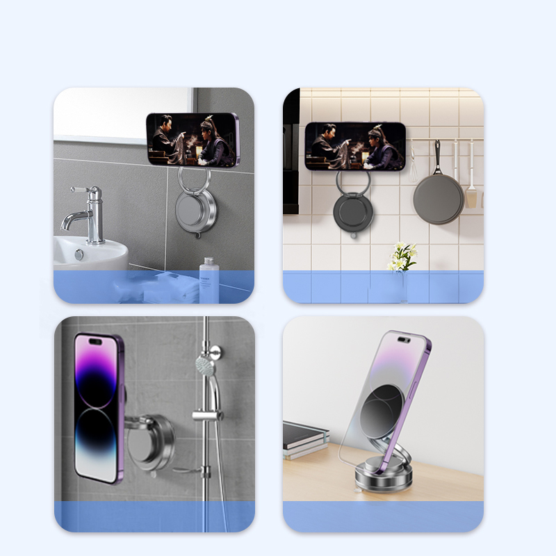 360° Ayarlanabilir Açılar 360° dönebilen başlık ve 180° katlanabilen menteşe sistemi sayesinde, telefonunuzu istediğiniz açıya göre ayarlayabilirsiniz. Hem masa üstü hem de dikey yüzeylerde kullanım imkanı sunan bu tasarım, eller serbest deneyim yaşamanızı sağlar. Mutfak, banyo, ofis gibi birçok ortamda rahatlıkla kullanılabilir.